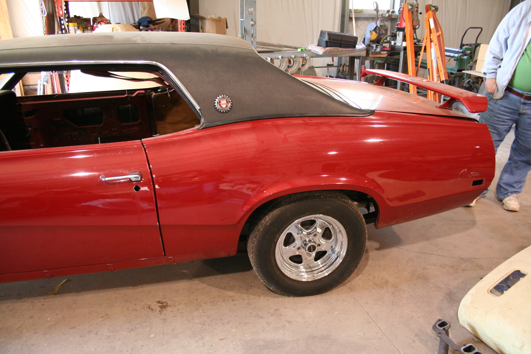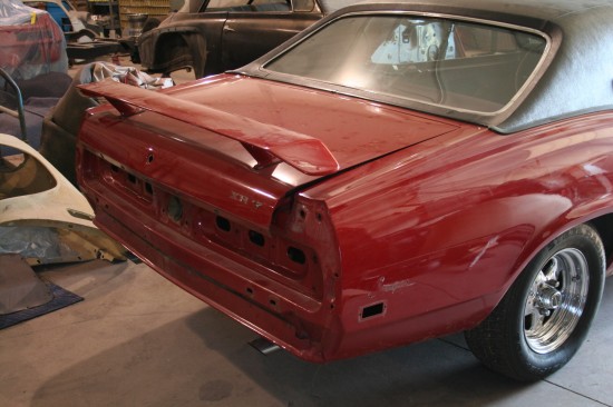 This time around it is the body that will get the attention and it is going to be a fast redo. We weren’t happy with the cheap paint job that was on it when we purchased the car. It looked great from the grandstands at the drag strip but not up to our standards even for a daily driver (our standards are pretty high). Our plan calls for all of the bolt on sheet metal to be removed and media blasted. They remaining sheet metal will be sanded down and all the panels straightened and smoothed. Every piece of chrome, stainless and aluminum will be redone or replaced. The black vinyl top is perfect so it will stay during the process. All new seals and gaskets will added throughout the body.